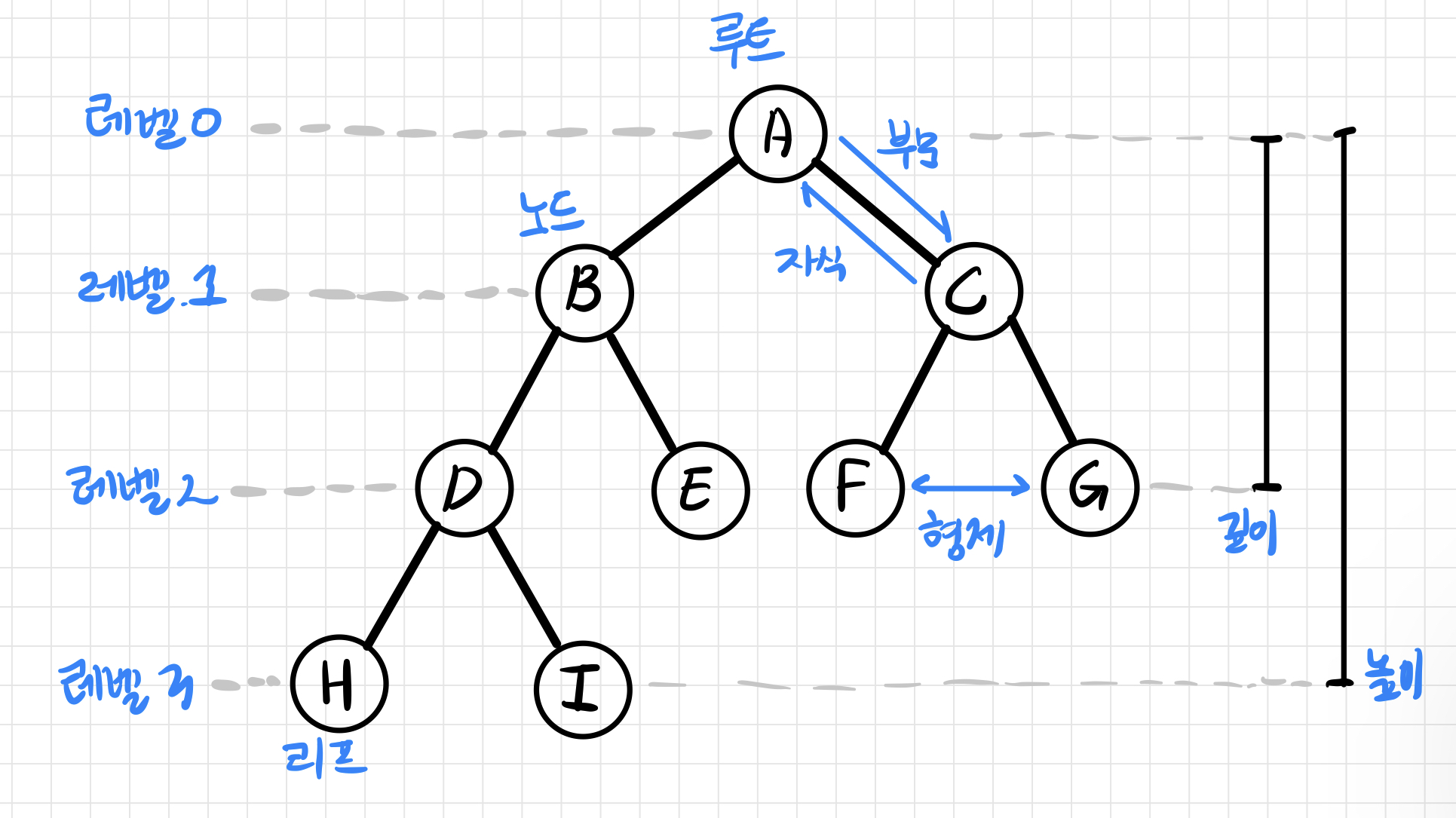 자식 노드 아래에 더 이상 다른 자식 노드가 없으면 잎(leaf)라고 한다.