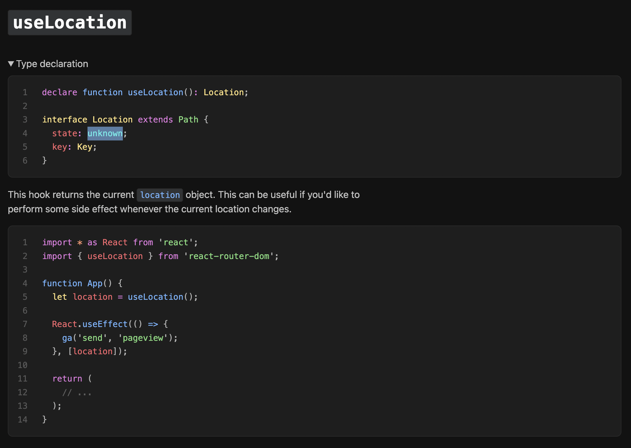 React Router v6 공식문서를 보았을 때 state의 타입 자체가 state의 타입 자체가 unknown으로 정의되어 있어서 내가 정의한 타입이 적용되지 않았고, Location 타입이 Generic 하게 만들어지지 않았기 때문에 다른 블로그에서 본 내용도 적용할 수 없었던 것 같다.