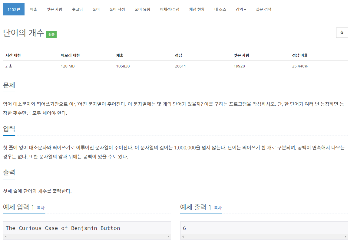 백준 1152번 문제 : 단어의 개수 문제입니다!!!