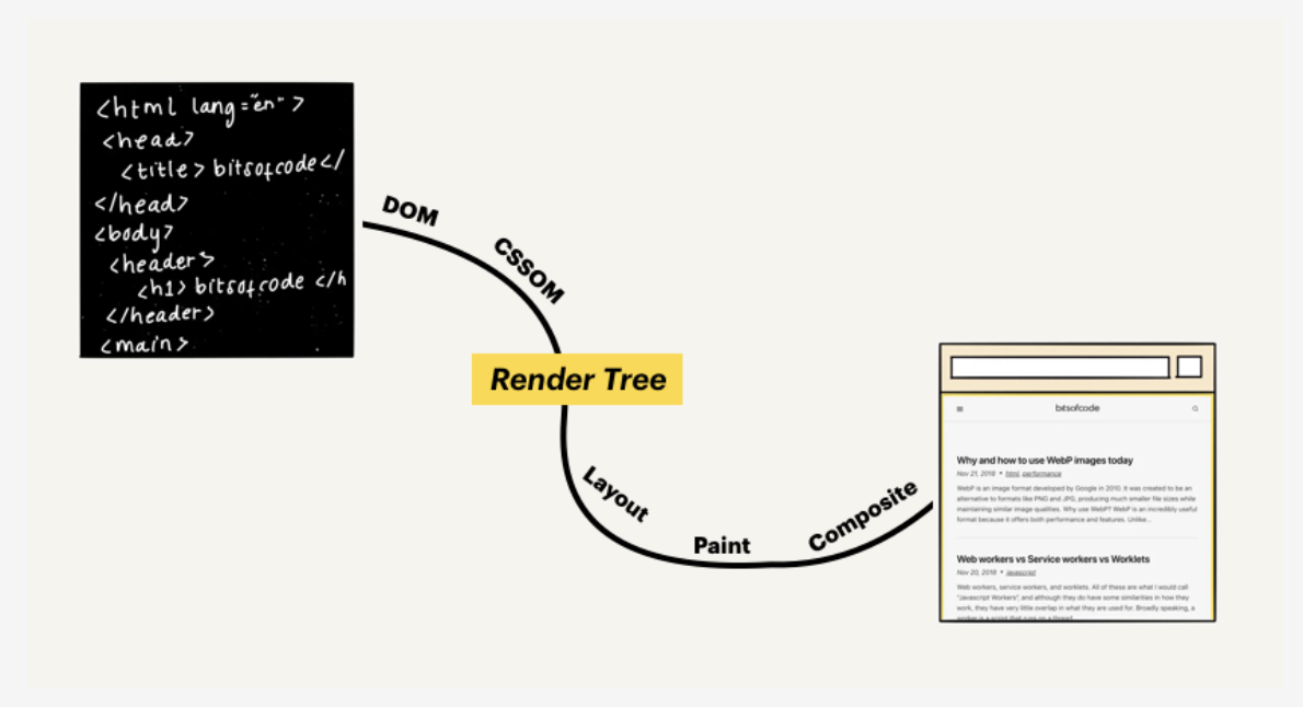 자세히 말하면 HTML을 구문 분석한 DOM 과 CSS를 분석한 CSSOM이다.